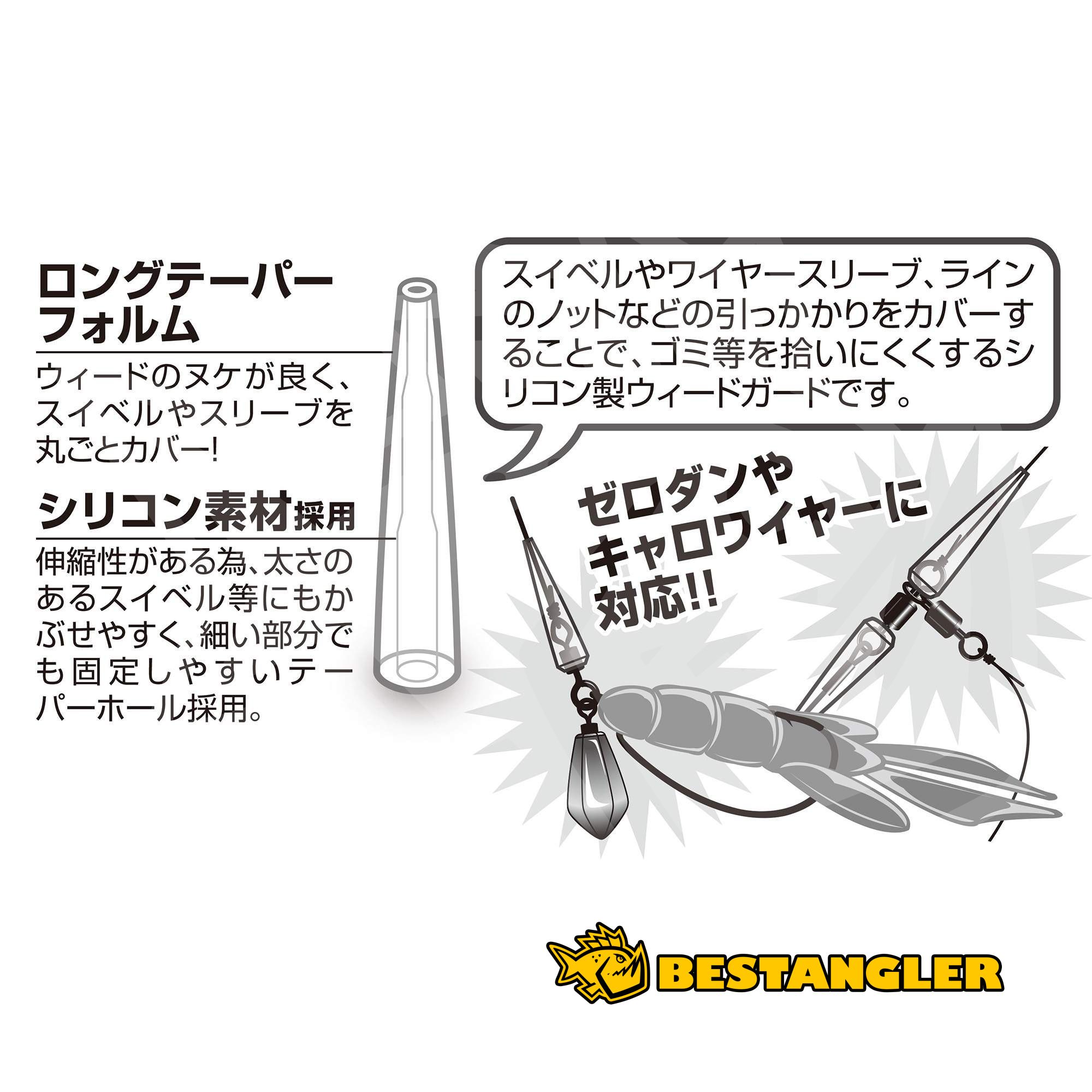 DECOY L-10 Long iGuard je kónická silikonová trubička, která slouží jako ochrana proti váznutí montáže ve vodní vegetaci. Navléká se přímo přes obratlíky, krimpovací trubičky lanka nebo uzly, čímž vytváří hladký přechod a výrazně minimalizuje zachytávání nečistot. Pružný materiál a proměnlivý průměr vnitřního otvoru zaručují snadné přetažení přes objemnější komponenty, zatímco užší konec pevně fixuje spoj i na velmi tenkém vlasci či šňůře. Prodloužený tvar spolehlivě zakryje celý obratlík a v transparentním provedení nijak nenarušuje přirozenou prezentaci nástrahy.