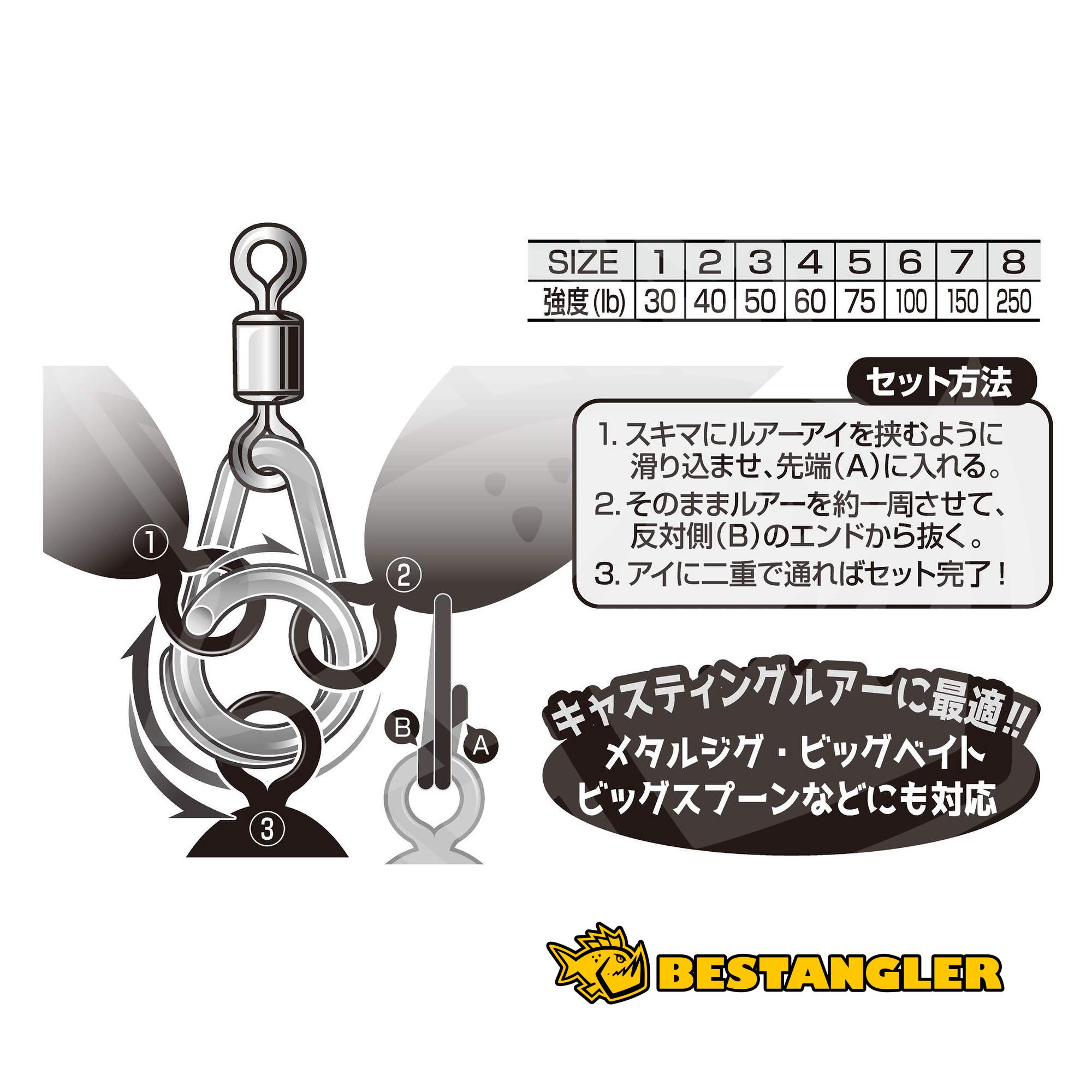 Řezná hrana typu out-cut snižuje riziko poškození návazce při zdolávání větších ryb a zvyšuje celkovou spolehlivost spojení. Povrchová úprava s antikorozní pasivací (ANTI CORROSION) chrání materiál před působením vlhkosti i slané vody. R-52 je praktické řešení pro přívlač i mořský rybolov, kde je důležitá rychlá výměna nástrah, omezení kroucení vlasce a mechanická jistota celé sestavy.