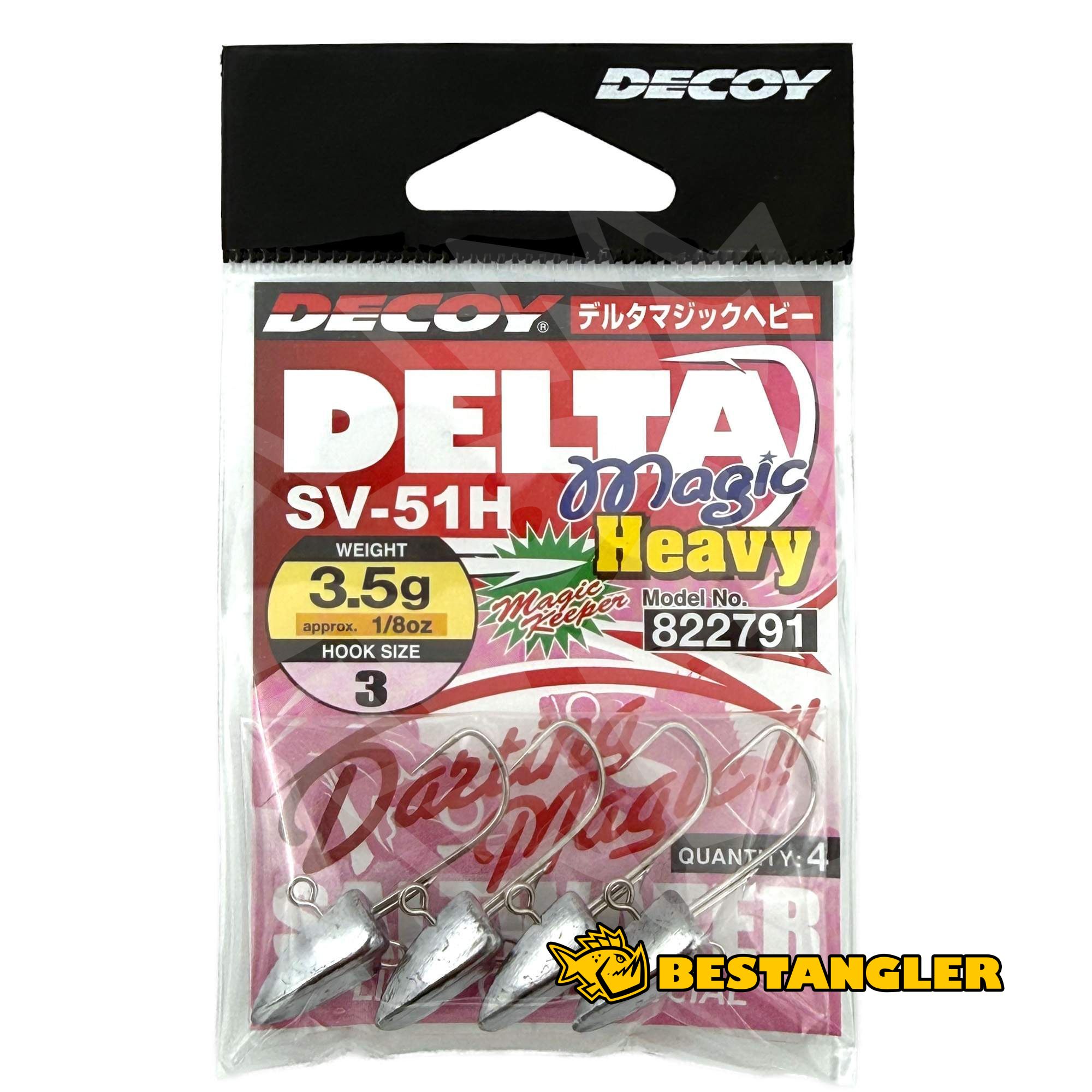 DECOY SV-51 Delta Magic / DECOY SV-51H Delta Magic Heavy je všestranná jigová hlavička pro jemné vedení nástrah i klasický lov u dna nebo v členitých skalnatých oblastech, navržená pro přesné vedení v různých hloubkách a podmínkách. Typický Delta Head tvar výborně řeže vodu a zajišťuje ostrý, okamžitý pohyb při škubnutí (dart action), zatímco při propadu udržuje nástrahu v přirozené poloze – což často spouští útok dravce.