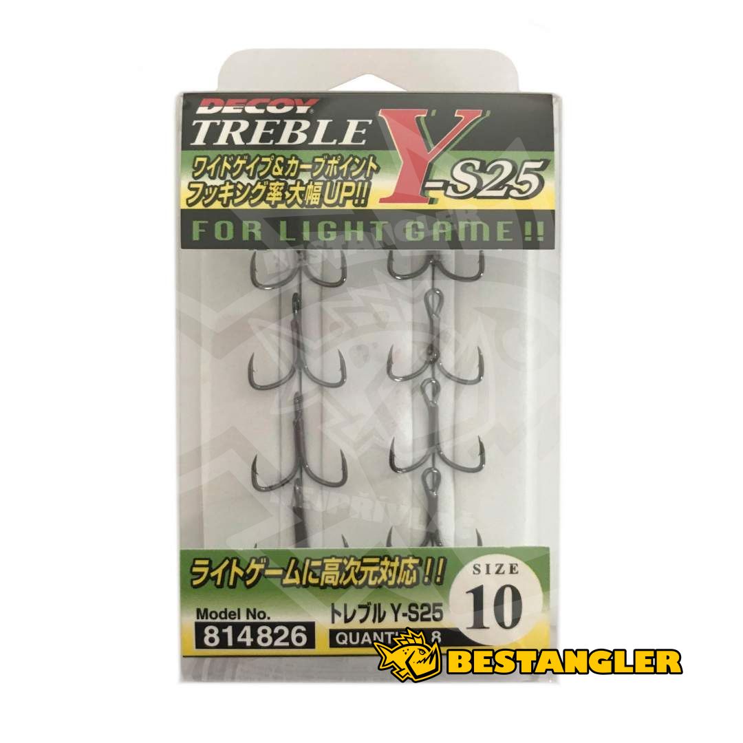 DECOY Treble Y-S25 je řada pevných a perfektně vyvážených trojháčků pro ultralehkou a lehkou přívlač. Perfektní háčky s velkou škálou použití - od lovu pstruhů až po lehkou přívlač na moři. Vyrobeno v Japonsku!