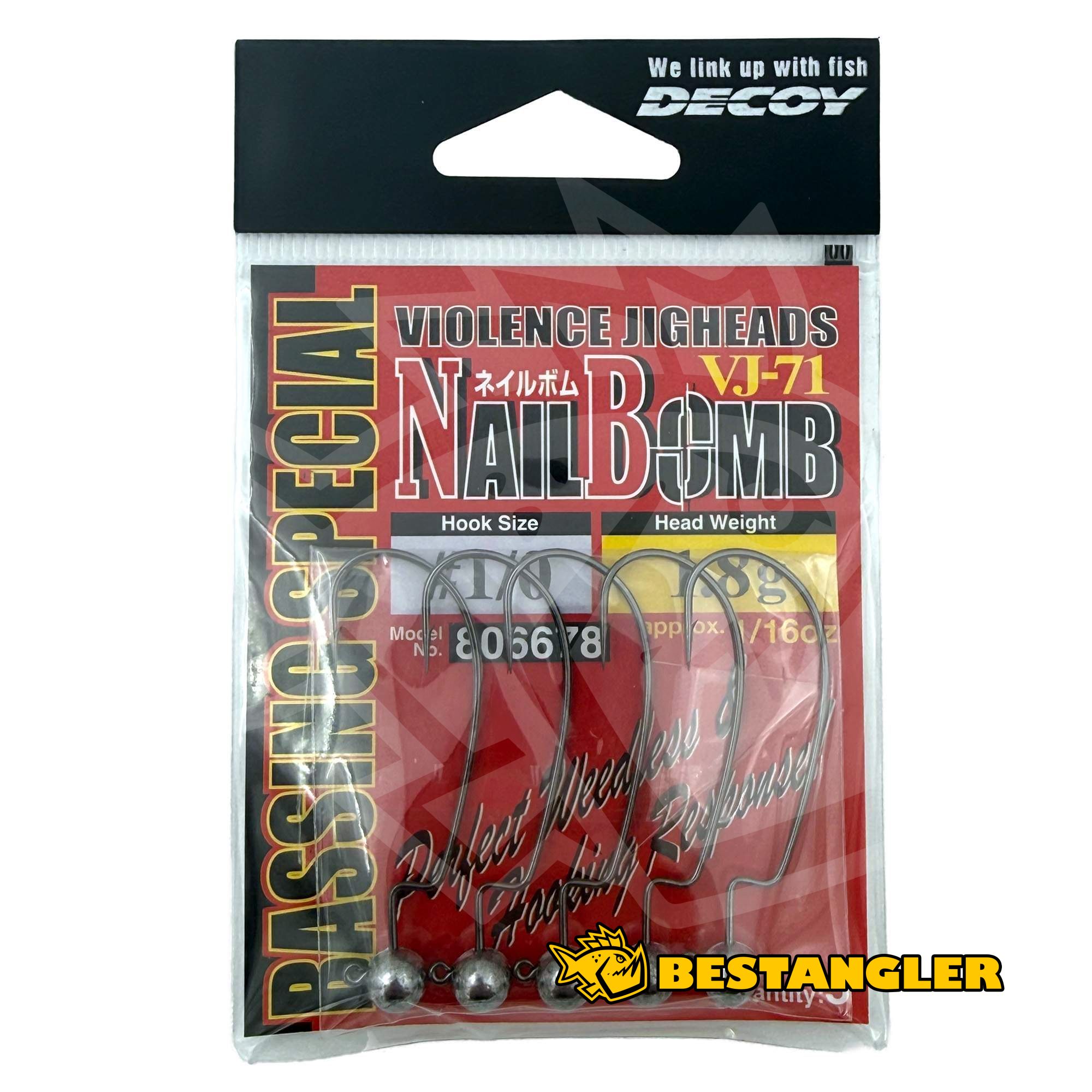 DECOY VJ-71 Nail Bomb je legendární offsetová jigová hlavička, která kombinuje vynikající neváznoucí schopnost s precizní reakcí při záseku. Speciálně tvarovaný offsetový háček zajišťuje ideální vedení nástrahy a minimalizuje riziko zachycení ve vegetaci nebo překážkách. Díky přesně vyvážené hlavě si nástraha při tažení zachovává přirozený pohyb s jemným rolováním, zatímco při lehkém škubání reaguje výrazněji a realisticky.