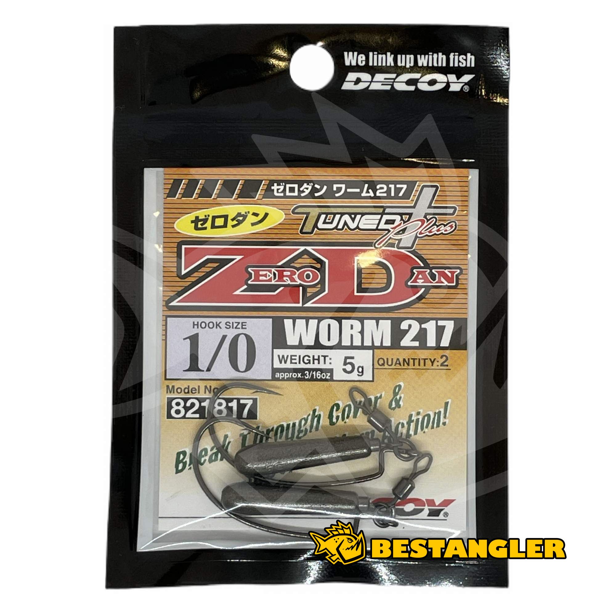 DECOY Worm 217 ZERO-DAN je plně složený Jika rig, určený hlavně k lovu okounů. Jednotlivé komponenty jsou té nejvyšší kvality. Jako základ je použitý osvědčený háček DECOY Worm 17 Kg Hook a závaží DECOY DS-6 Sinker type Stick. Závaží je přidělané na obratlíku DECOY SN-7 Open Swivel pro maximální mobilnost. Úzký profil závaží umožňuje daleké a přesné náhozy. Díky offsetovému háčku nástraha téměř nevázne.