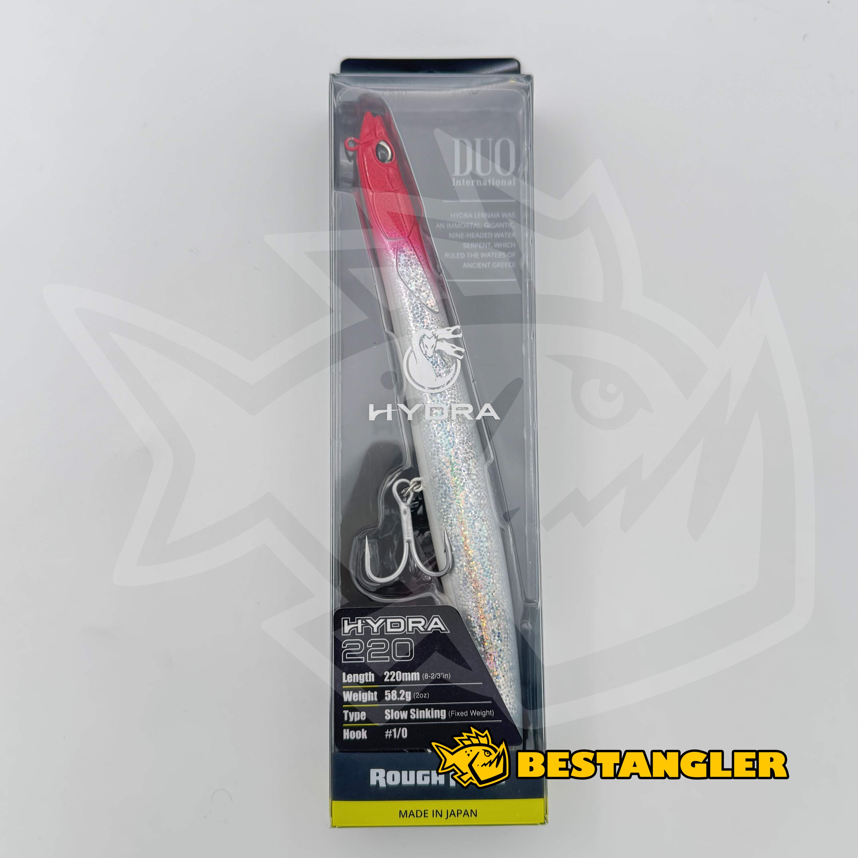 DUO Rough Trail Hydra 220 je dlouhý pencil wobler navržený pro lov pelagických dravců, kteří aktivně sbírají potravu u hladiny. Jeho akce je postavená na dynamickém skippingu po hladině, při kterém dokonale imituje pohyb jehlic a jehlicovitých rybek. Právě agresivní útoky na hladině patří k nejadrenalinovějším zážitkům v rybařině – a Hydra je přesně nástraha, která tyto momenty dokáže vyvolat.
