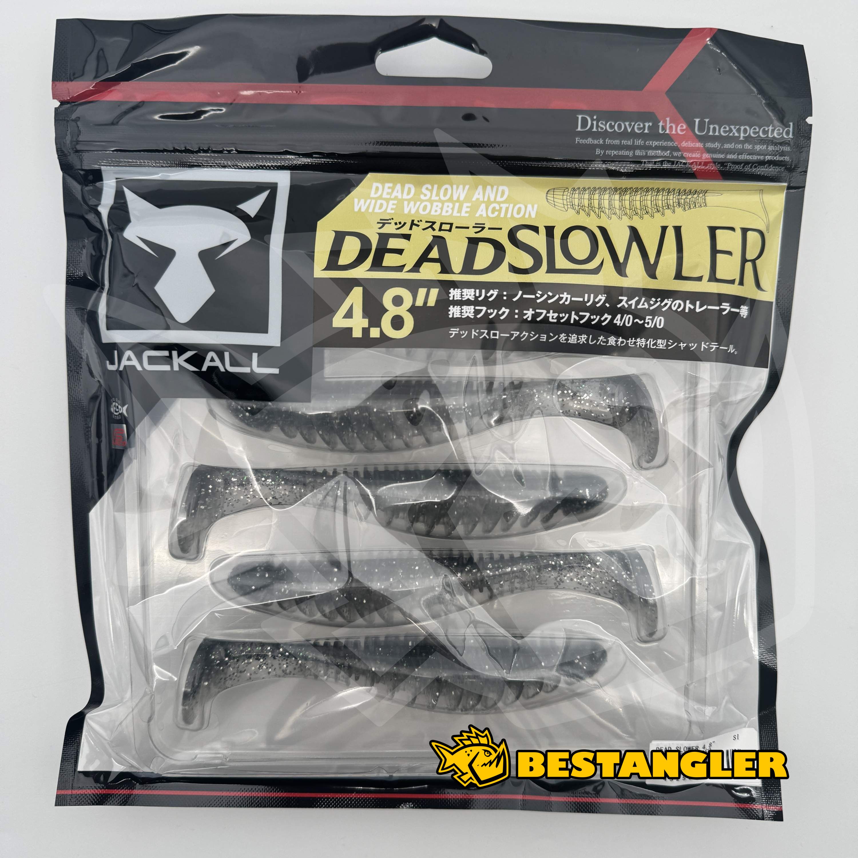 Jackall Dead Slowler 4.8" je speciální gumová nástraha typu shad tail navržená pro extrémně pomalé vedení. Díky svému tvaru a měkkému materiálu pracuje spolehlivě i při minimální rychlosti, což z ní dělá výjimečnou zbraň pro lov opatrných ryb v okolí překážek.