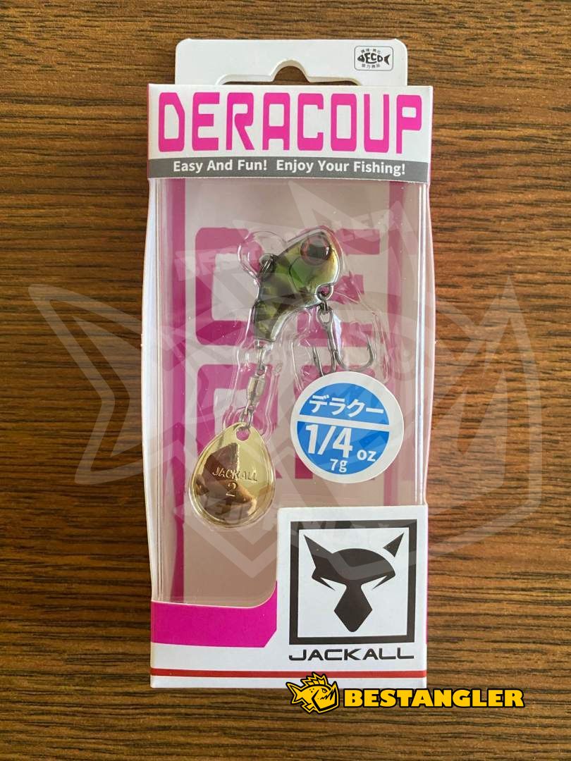 Jackall Deracoup patří mezi nejlepší tailspinnery na světě a dlouhodobě patří k nástrahám, na které se rybáři mohou spolehnout v jakýchkoliv podmínkách. Má kompaktní, těžké tělo s většinou hmotnosti soustředěnou v přední části, díky čemuž se s ním dá nahazovat opravdu daleko – a to i proti silnému větru. Malé tělo rybám usnadňuje nasátí nástrahy, takže většina záběrů končí úspěšným zásekem. Colorado rotační plíšek na kvalitním obratlíku se roztočí i při velmi pomalém vedení a vytváří silné vibrace, které ryby spolehlivě přitahují.