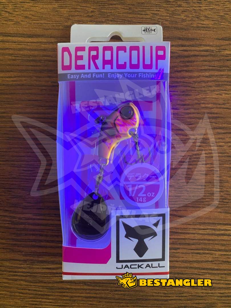 Jackall Deracoup patří mezi nejlepší tailspinnery na světě a dlouhodobě patří k nástrahám, na které se rybáři mohou spolehnout v jakýchkoliv podmínkách. Má kompaktní, těžké tělo s většinou hmotnosti soustředěnou v přední části, díky čemuž se s ním dá nahazovat opravdu daleko – a to i proti silnému větru. Malé tělo rybám usnadňuje nasátí nástrahy, takže většina záběrů končí úspěšným zásekem. Colorado rotační plíšek na kvalitním obratlíku se roztočí i při velmi pomalém vedení a vytváří silné vibrace, které ryby spolehlivě přitahují.