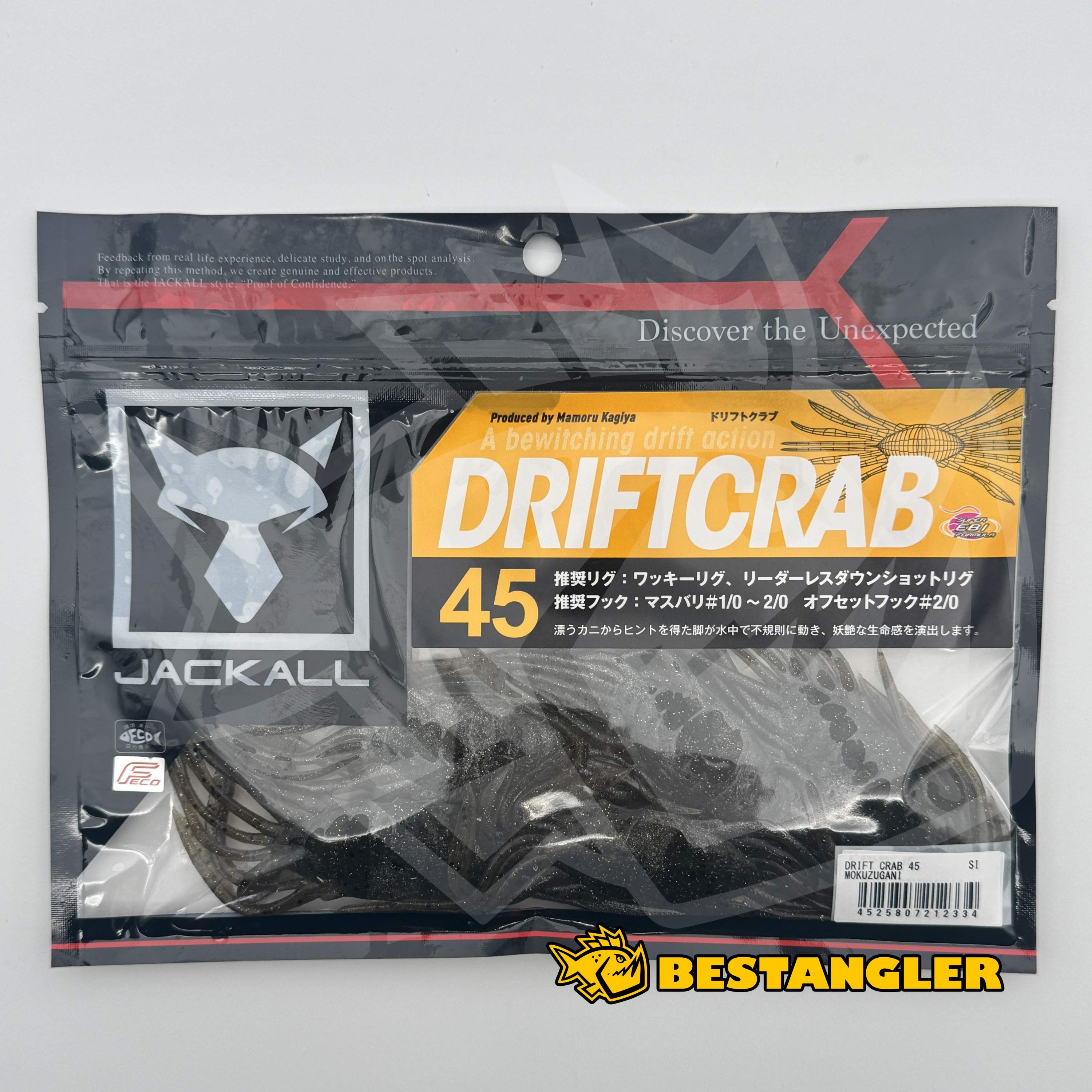 Jackall Drift Crab 45 přináší do světa gumových nástrah nový směr – imitaci kraba, který se v přírodě často stává přirozenou kořistí dravců. Jeho ploché tělo a symetricky umístěné končetiny věrně napodobují siluetu i chování skutečného kraba při propadu, čímž se stává extrémně účinným i na opatrné ryby.