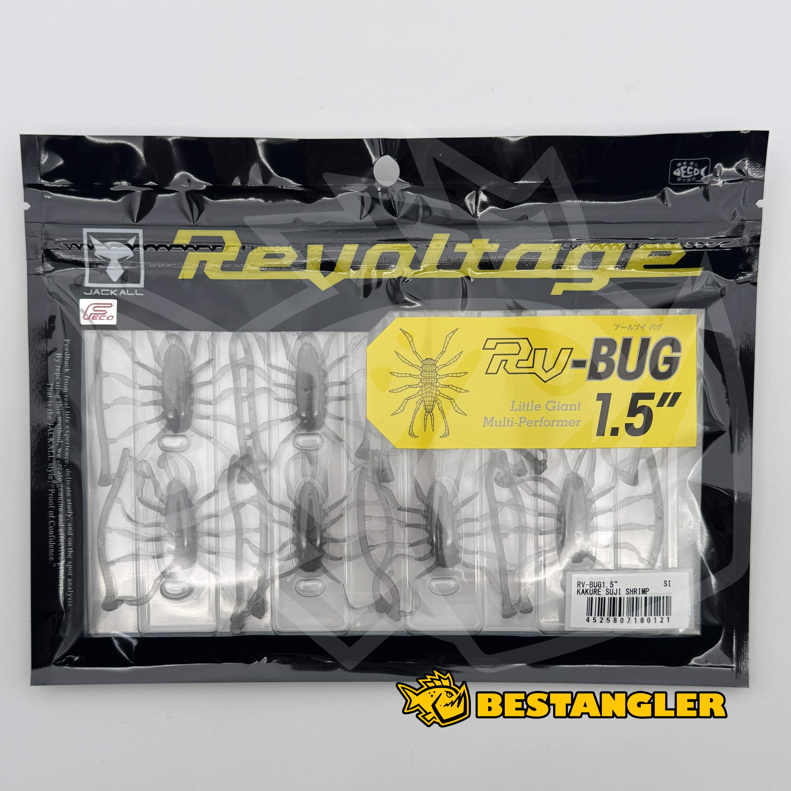 Jackall RV-Bug 1.5" je originální „potápivá nástraha imitující hmyz“, navržená pro přirozenou prezentaci pod hladinou. Při volném propadu zůstává vodorovně vyvážená a pětice tenkých nožiček vytváří jemné mikrovibrace, které připomínají pohyb skutečného vodního hmyzu nebo malých korýšů.