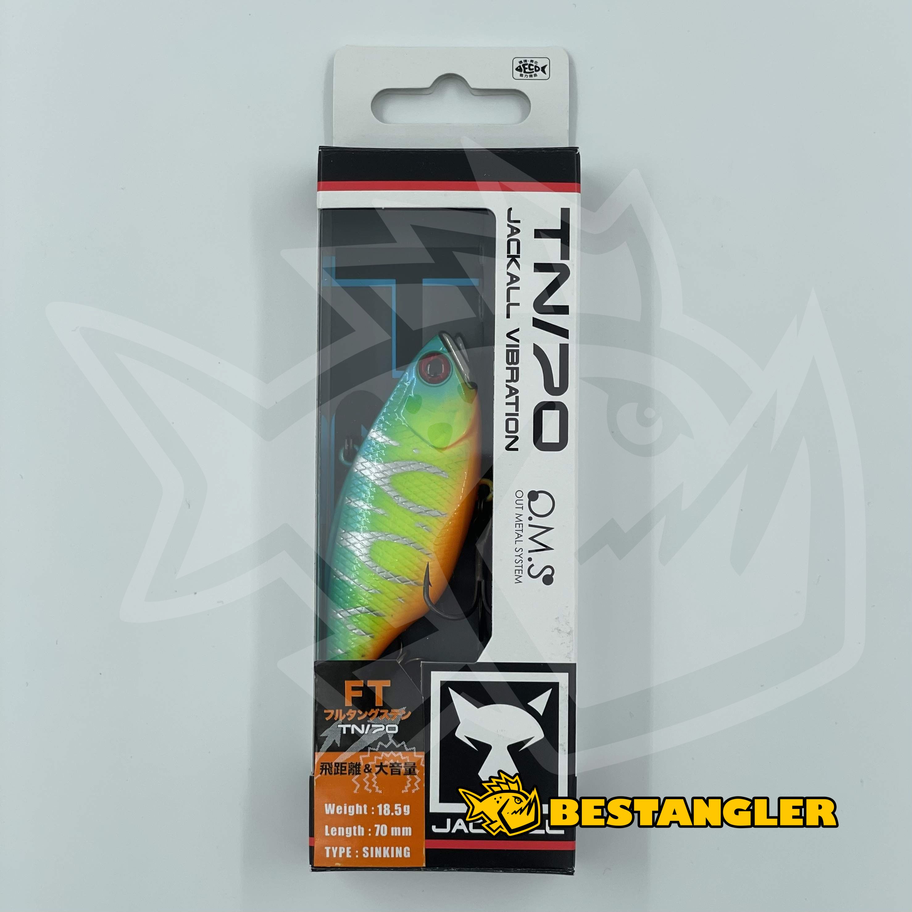 Série bezlopatkových crankbaitů Jackall TN je známá pro stabilní plovoucí akci, vynikající letové vlastnosti a výjimečnou schopnost detekce dna. Díky technologii OMS (Out Metal System) s wolframovou zátěží v tlamě má nízké těžiště, což zajišťuje stabilní let při náhozu. Po dopadu do vody se rychle aktivuje a efektivně pracuje při všech rychlostech navíjení. Naklopené postavení při tažení po dně imituje přirozený pohyb ryb a zároveň minimalizuje riziko uváznutí. Silné vibrace a výrazný zvuk (kromě Silent modelů) přispívají k její úspěšnosti při lovu bassů, štik, candátů a dalších dravců. Nástraha Jackall TN je dostupná v několika velikostech a variantách pro široké využití a různé podmínky lovu.