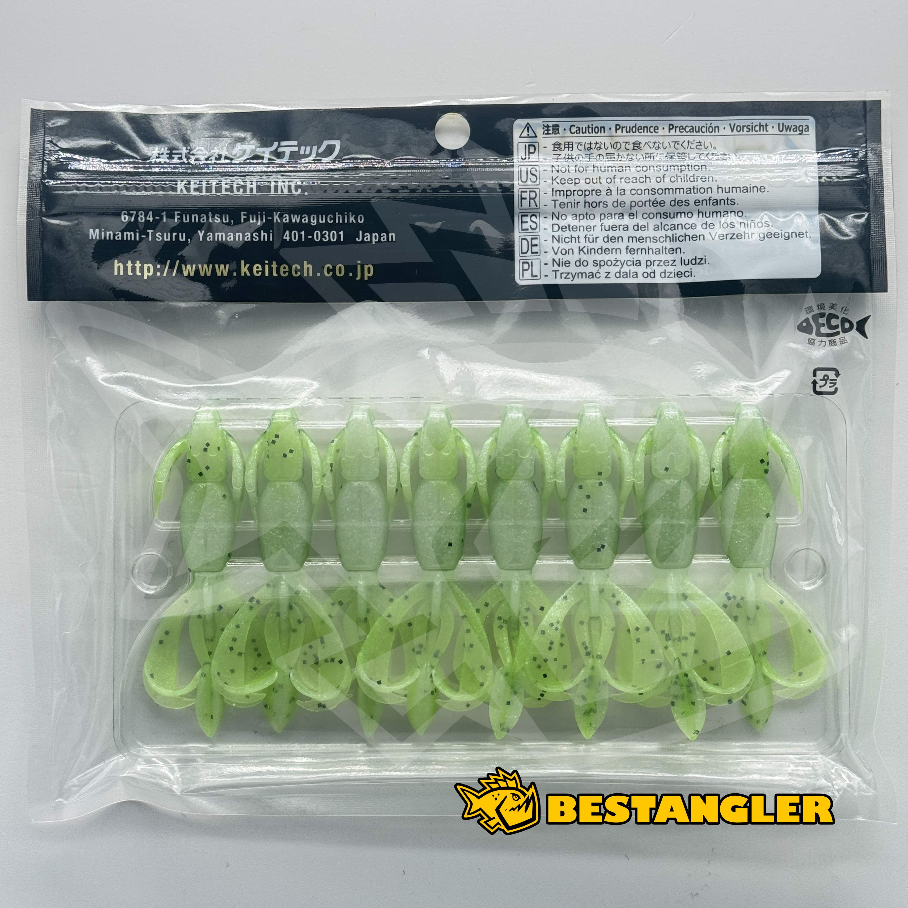 Keitech Crazy Flapper je vysoce akční imitace raka, která patří mezi nejúčinnější nástrahy pro lov v těžkých podmínkách a na silně prochytávaných vodách. Díky patentovanému tvaru těla dokáže snadno propadat i hustou vegetací a přesně dosedat ke dnu. Charakteristickým znakem jsou velká, aktivní klepeta a chapadla, která se okamžitě rozpohybují i při minimálním pohybu nebo pomalém propadu a vytvářejí silný vizuální i tlakový efekt.