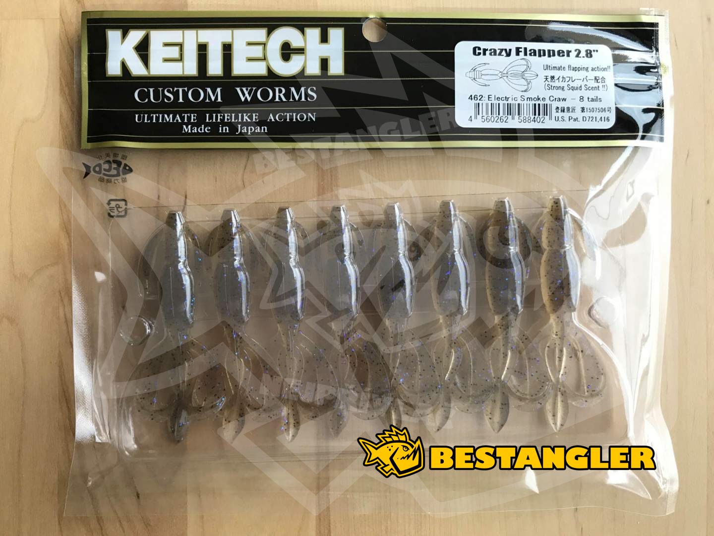 Keitech Crazy Flapper je vyroben kombinací dvou různých gumových materiálů, díky čemuž je měkký a zároveň velmi odolný. Nástraha je ochucena hrubými kousky soli a zvýrazněna silným, olihňovým aromatem, což ještě více podporuje její účinnost zejména při lovu velkých okounů. Skvěle funguje i pro lov štik a candátů. Základem úspěchu Crazy Flapperu je patentovaný tvar nástrahy. Tělo snadno propadá na dno i ve velmi silné vegetaci, klepeta a chapadla se neodolatelně vlní při sebemenším pohybu. Nástraha tak dokonale pracuje i při minimálním zatížení, při pomalém propadu často vyprovokuje k útoku i jinak neaktivní dravce. Crazy Flapper je možné nastražit na klasické jigové hlavičky, na Drop Shot, nebo Carolina / Texas Rig. Vyrobeno v Japonsku!