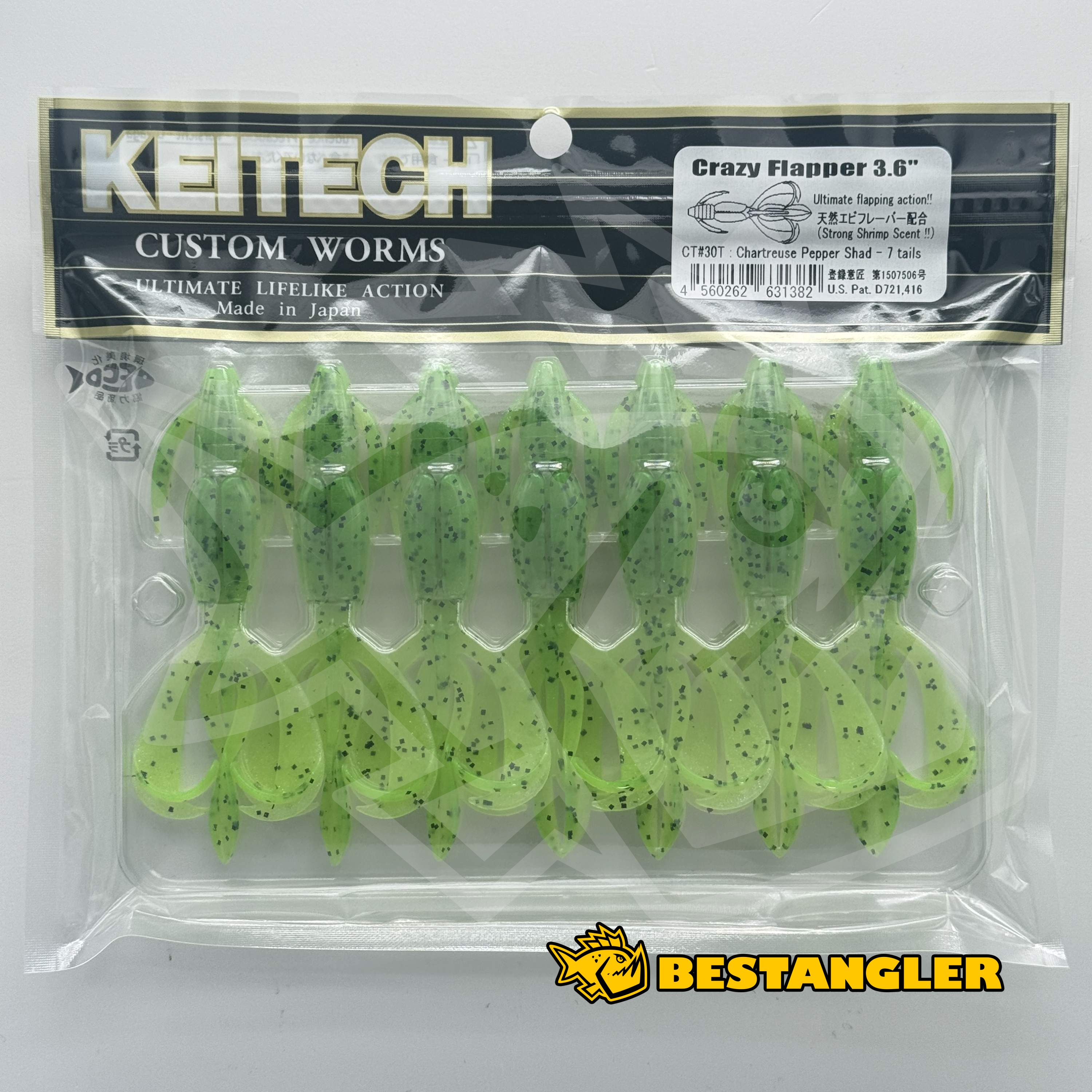 Keitech Crazy Flapper 3.6" Chartreuse Pepper Shad