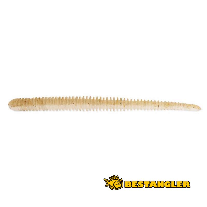 Keitech Easy Shaker je rovný gumový červ se silným olihňovým aroma, určený hlavně pro lov metodou Drop Shot. Kombinace prstencového těla a nesoleného materiálu umožňuje Easy Shakeru udržet vodorovnou polohu po dlouhou dobu. I ty nejmenší pohyby prutem, nebo proudění vody vytvářejí velmi realistický pohyb po celé délce těla červa. Prstencové žebrování pokrývající téměř celé tělo dává nástraze velkou siluetu, zatímco tenké jádro těla jí umožňuje pohybovat se velmi živě. Hlavová část červa Easy Shaker je trochu silnější, aby se dal lépe napíchnout na offsetový háček. Do zad a břicha nástrahy jsou umístěny drážky, díky kterým je špička offsetového háčku skrytá v žebrování a nástraha téměř nevázne. Nesolený materiál umožňuje červovi lákat ryby, aniž by ztratil vodorovnou polohu, ať už chytáte na Drop Shot s normálním, nebo offsetovým háčkem. Vyrobeno v Japonsku!