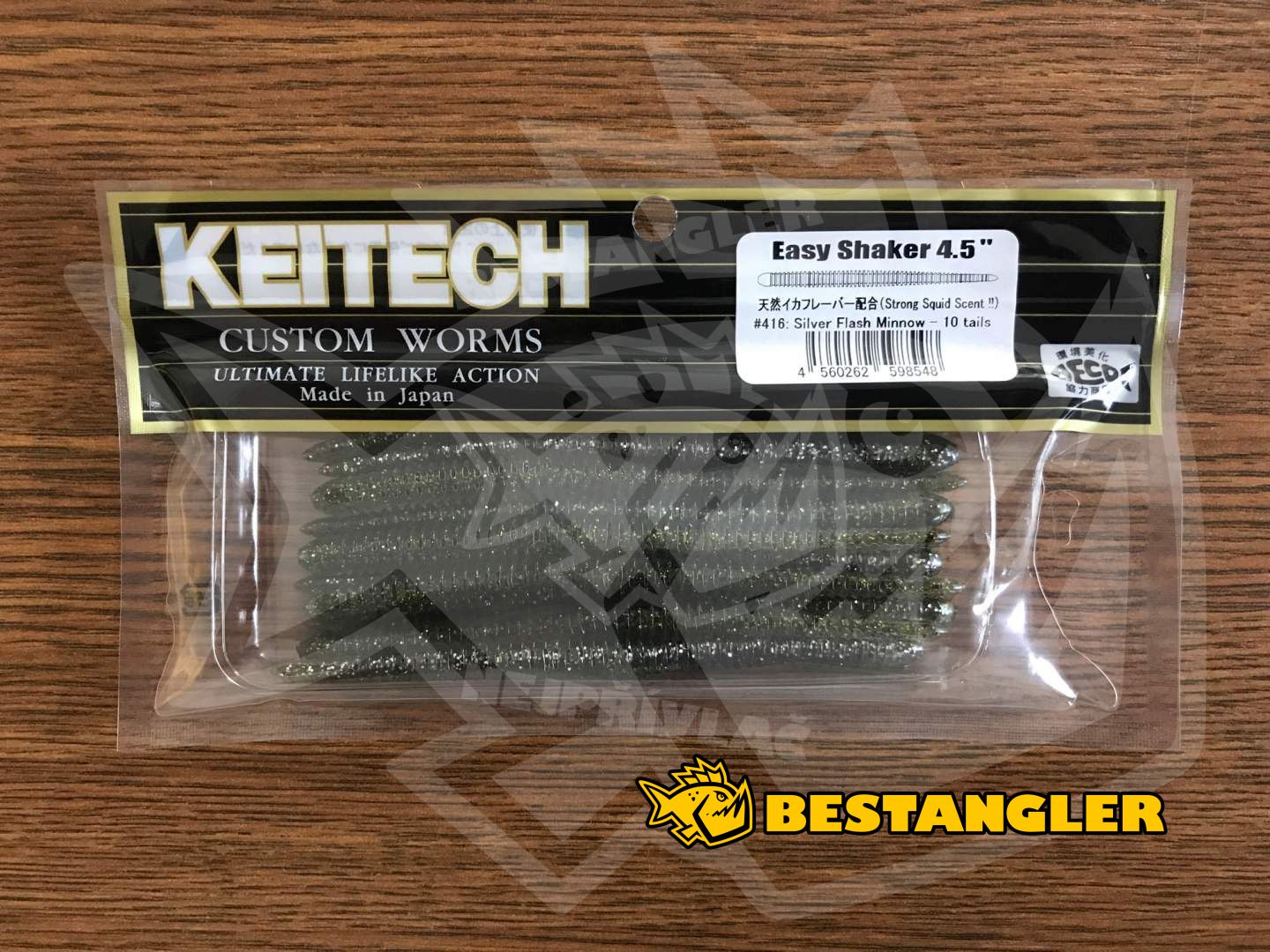 Keitech Easy Shaker je rovný gumový červ se silným olihňovým aroma, určený hlavně pro lov metodou Drop Shot. Kombinace prstencového těla a nesoleného materiálu umožňuje Easy Shakeru udržet vodorovnou polohu po dlouhou dobu. I ty nejmenší pohyby prutem, nebo proudění vody vytvářejí velmi realistický pohyb po celé délce těla červa. Prstencové žebrování pokrývající téměř celé tělo dává nástraze velkou siluetu, zatímco tenké jádro těla jí umožňuje pohybovat se velmi živě. Hlavová část červa Easy Shaker je trochu silnější, aby se dal lépe napíchnout na offsetový háček. Do zad a břicha nástrahy jsou umístěny drážky, díky kterým je špička offsetového háčku skrytá v žebrování a nástraha téměř nevázne. Nesolený materiál umožňuje červovi lákat ryby, aniž by ztratil vodorovnou polohu, ať už chytáte na Drop Shot s normálním, nebo offsetovým háčkem. Vyrobeno v Japonsku!