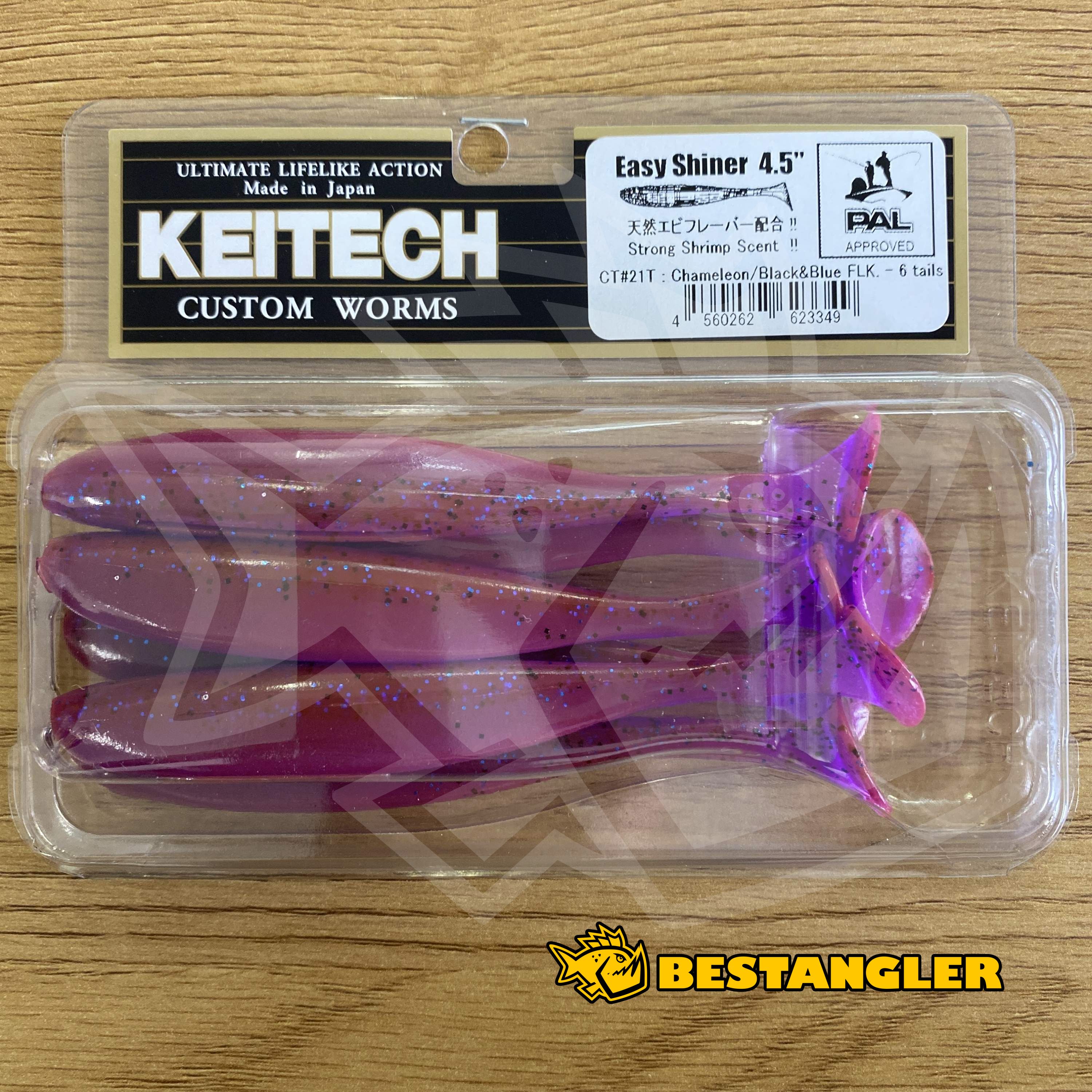 Originální dvoutónový vstřikovací proces Keitech využívá kombinaci různě slaných materiálů, díky čemuž má Easy Shiner přirozený vztlak, přesně čitelnou akci a okamžitou odezvu při jakémkoliv způsobu vedení. Tenký, pružný ocásek pracuje spolehlivě v širokém rozsahu rychlostí a neztrácí akci ani při jemném tažení. Nástraha je napuštěna slanou příchutí a silným olihňovým aromatem, které prodlužuje dobu držení v tlamce. Easy Shiner lze použít na jigové hlavičce, bez zátěže, na drop shot, Texas, Carolina i Split Shot rig a díky široké škále velikostí je vhodný pro lov téměř všech druhů dravců ve sladké i slané vodě. Vyrobeno v Japonsku.