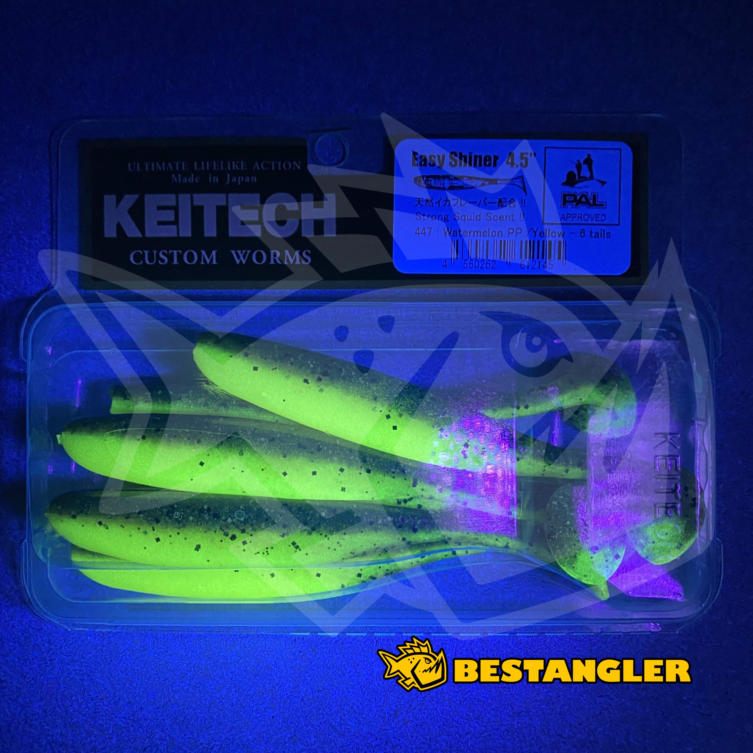 Easy Shiner je nejoblíbenější a nejuniverzálnější gumová nástraha značky KEITECH. Vznikla kombinací těla smáčku Shad Impact s fantastickým účinkem ocásku Swing Impactu. Originální dvoutónový proces vstřikování barev japonské společnosti KEITECH používá různé druhy slaných plastů pro dosažení fantastického vyvážení a chodu nástrahy. Díky tomu je Easy Shiner perfektně vyvážený a má přirozený plovoucí pohyb i při velmi pomalých rychlostech. Nástraha má slanou příchuť a silné olihňové aroma. KEITECH Easy Shiner lze používat mnoha způsoby - na jigové hlavičce, na háčku bez zátěže, na Dropshot montáži, Texas Rig, Carolina Rig nebo Split Shot Rig. Vyrobeno v Japonsku!