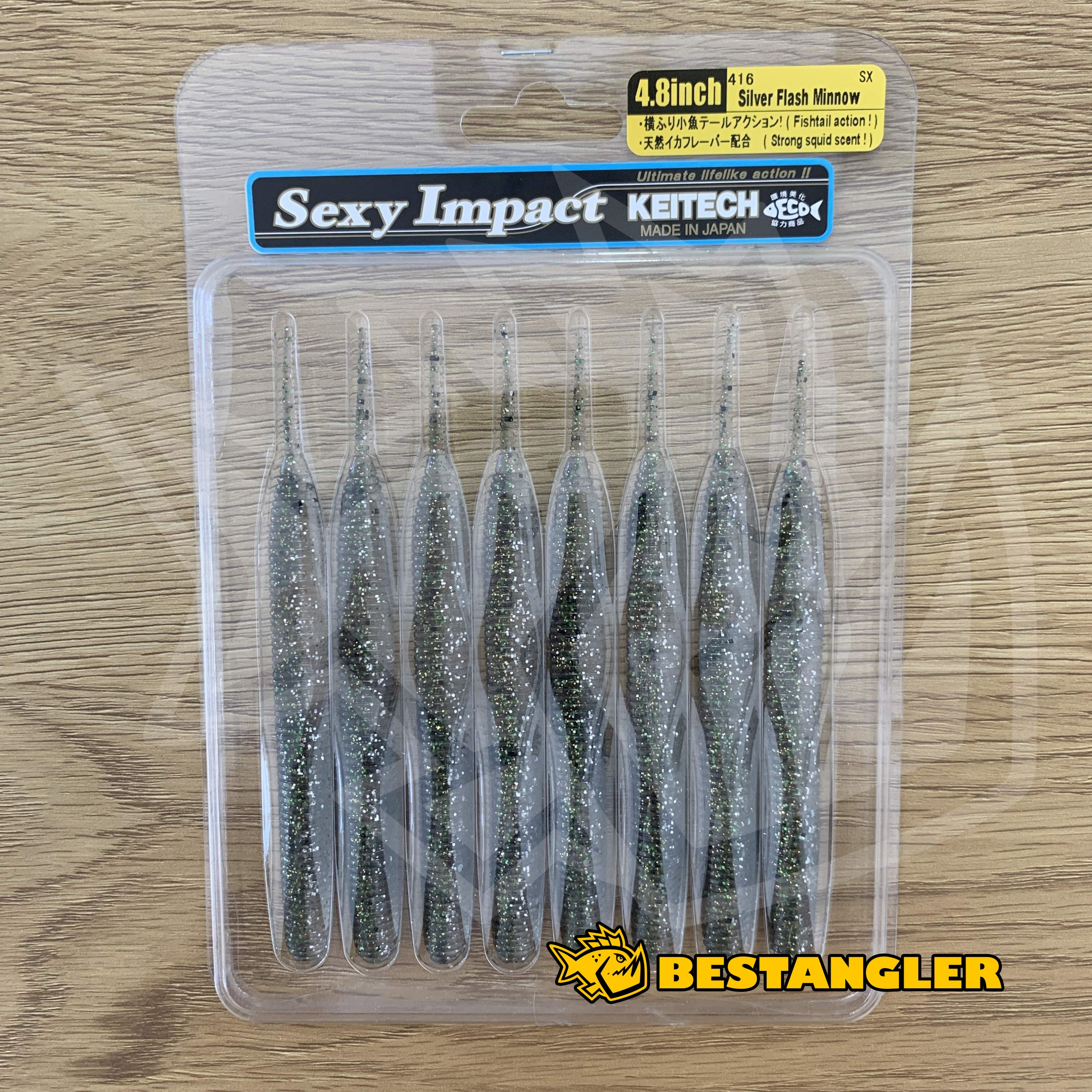Gumová nástraha Sexy Impact od Keitechu je štíhlá nástraha se ztenčeným ocáskem. Použití je široké - nejlepší je na jemné způsoby lovu jako je Dropshot, Texas Rig nebo na ofsetovém háčku bez zátěže. Dá se také použít s čeburaškou nebo na kratší jigové hlavičce jako smáček. Použitý materiál je slaný se silným olihňovým aroma. Perfektní nástraha na okouny a candáty. Vyrobeno v Japonsku!