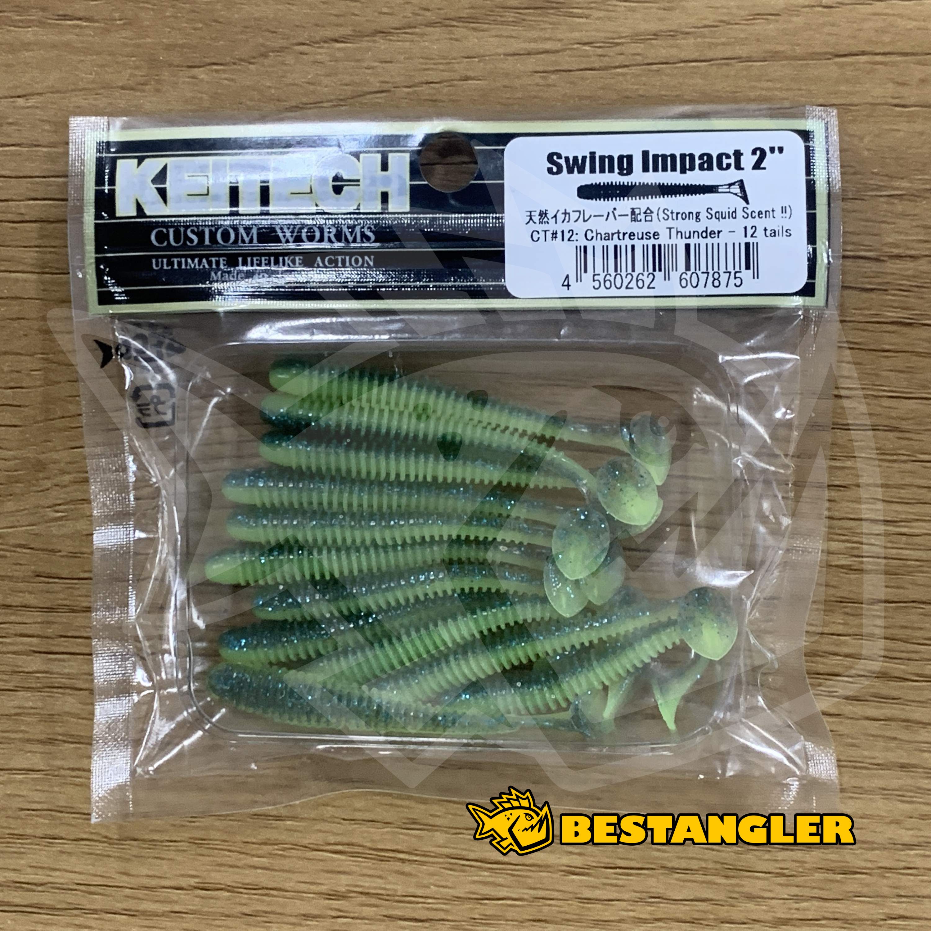 Keitech Swing Impact je osvědčená závodní nástraha. Má pravděpodobně nejlepší plovoucí akci ze všech srovnatelných swimbaitů. Vydaváné vibrace spolu s úzkým pohybem nástrahy přivádějí dravce k šílenství. Originální dvoutónový proces vstřikování barev používá různé druhy slaných plastů pro dosažení fantastického vyvážení a chodu nástrah Swing Impact. Nástrahy lze používat mnoha způsoby - na jigové hlavičce, na háčku bez zátěže, na Dropshot montáži, Texas Rig, Carolina Rig nebo Split Shot Rig. Nástraha má slanou příchuť a silné olihňové aroma. Vyrobeno v Japonsku!