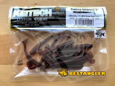 Keitech Swing Impact je osvědčená závodní nástraha. Má pravděpodobně nejlepší plovoucí akci ze všech srovnatelných swimbaitů. Vydaváné vibrace spolu s úzkým pohybem nástrahy přivádějí dravce k šílenství. Originální dvoutónový proces vstřikování barev používá různé druhy slaných plastů pro dosažení fantastického vyvážení a chodu nástrah Swing Impact. Nástrahy lze používat mnoha způsoby - na jigové hlavičce, na háčku bez zátěže, na Dropshot montáži, Texas Rig, Carolina Rig nebo Split Shot Rig. Nástraha má slanou příchuť a silné olihňové aroma. Vyrobeno v Japonsku!