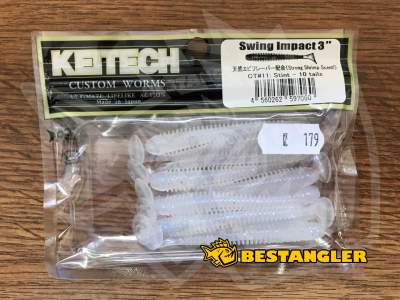 Keitech Swing Impact je osvědčená závodní nástraha. Má pravděpodobně nejlepší plovoucí akci ze všech srovnatelných swimbaitů. Vydaváné vibrace spolu s úzkým pohybem nástrahy přivádějí dravce k šílenství. Originální dvoutónový proces vstřikování barev používá různé druhy slaných plastů pro dosažení fantastického vyvážení a chodu nástrah Swing Impact. Nástrahy lze používat mnoha způsoby - na jigové hlavičce, na háčku bez zátěže, na Dropshot montáži, Texas Rig, Carolina Rig nebo Split Shot Rig. Nástraha má slanou příchuť a silné olihňové aroma. Vyrobeno v Japonsku'