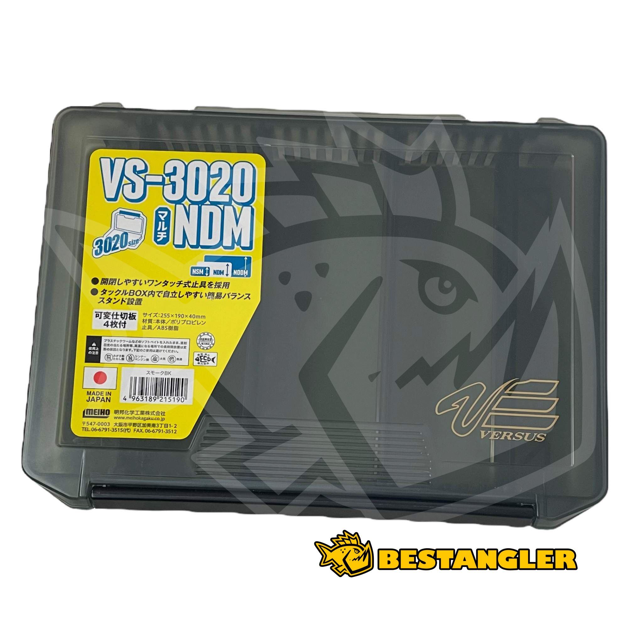 Krabička Versus VS-3020 NDM černá má 4 variabilní příčky. Díky větší výčce je tato krabička skvělá pro větší nástrahy jako jsou například cranky, delší jerkbaity, nebo větší gumové nástrahy. Materiál: polypropylen, zámek ABS, worm proof. Vyrobeno v Japonsku!