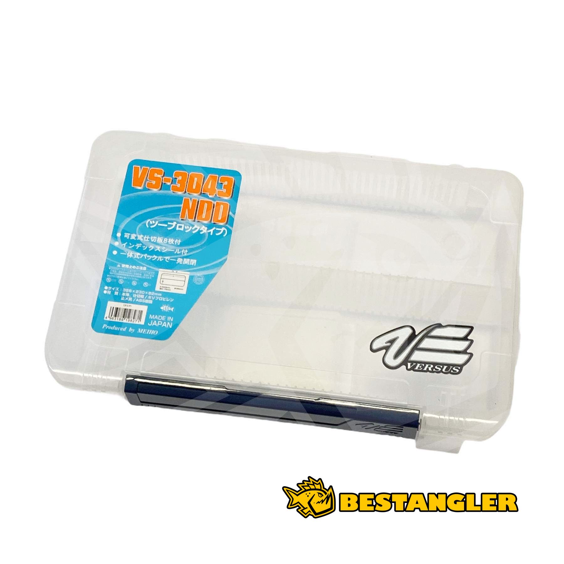 Krabička Versus VS-3043 NDD transparentní má 8 variabilních přepážek. Krabičky mají prolisy a nohy, takže je lze položené skládat na sebe, nebo je postavit. Zámek je konstruován i jako rukojeť na přenášení a zároveň tak, aby šel otevřít jednou rukou. Krabičky mají uvnitř jemné žebrování pro variabilní přepážky. Materiál: Polypropylen, zámek ABS. Worm Proof.