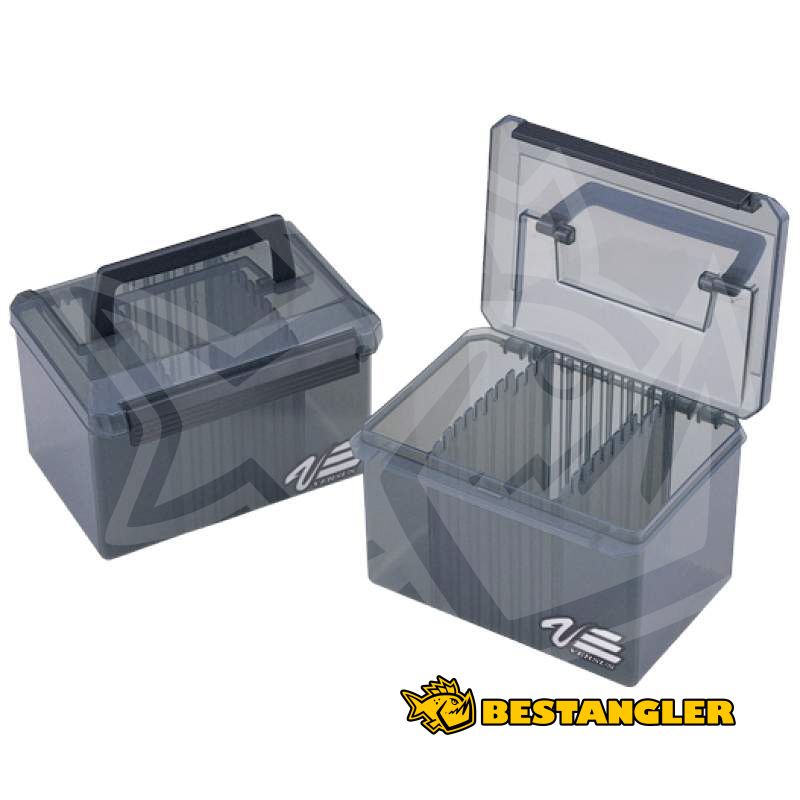 Krabička Versus VS-4060 má 2 variabilní přepážky. Krabička je primárně určená k ukládání spinnerbaitů, kterých se do ní vejde 20. Skvěle se hodí ale i pro chatterbaity, větší třpytky, nebo woblery. Po vyndání přepážek je perfektní na ukládání gumových nástrah v originálních sáčcích. Krabičku lze pohodlně otevřít jednou rukou, díky praktickému madlu se jednoduše na přenáší. Materiál: Polypropylen, zámek ABS. Worm Proof.