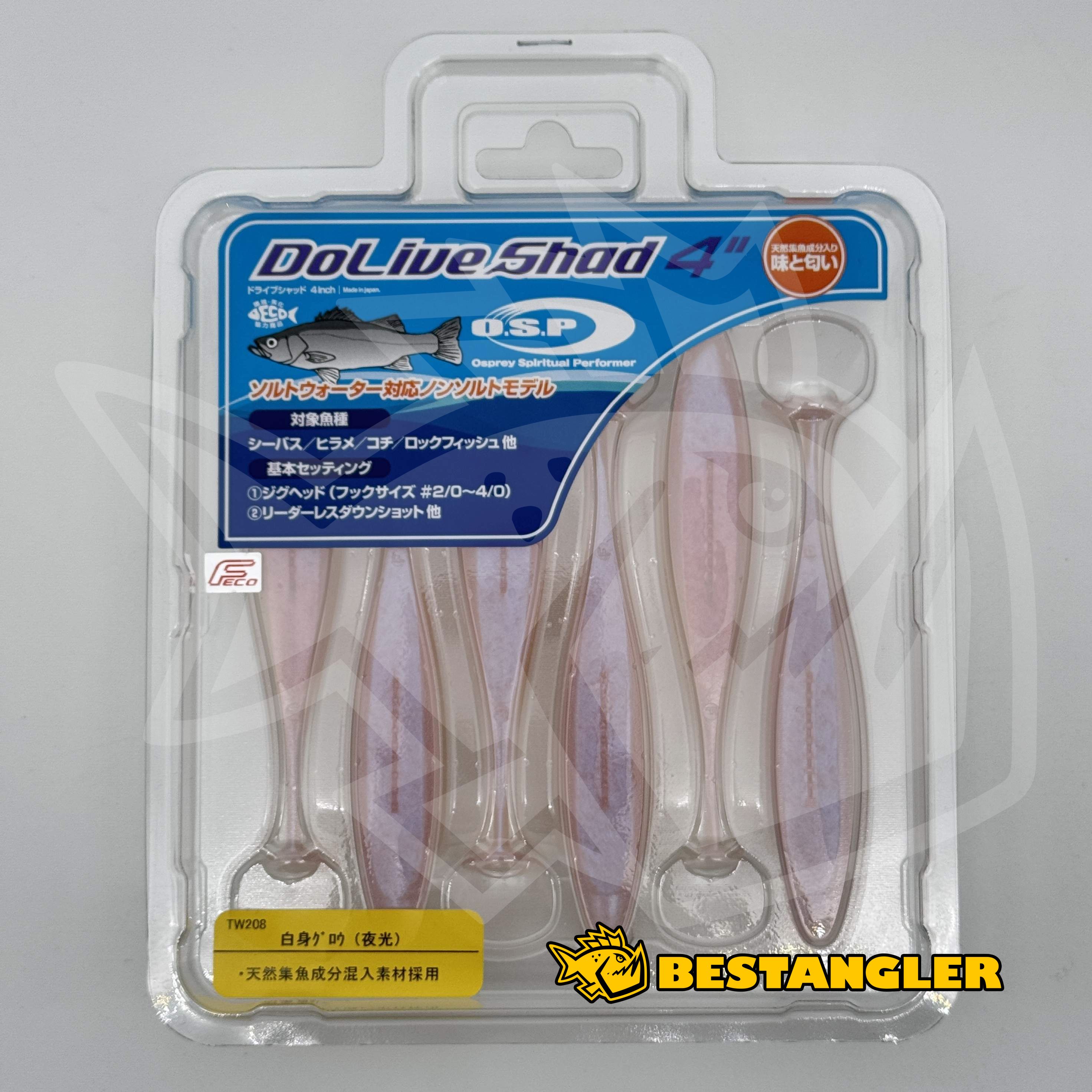 O.S.P DoLive Shad 4" SW White Fish Glow TW208