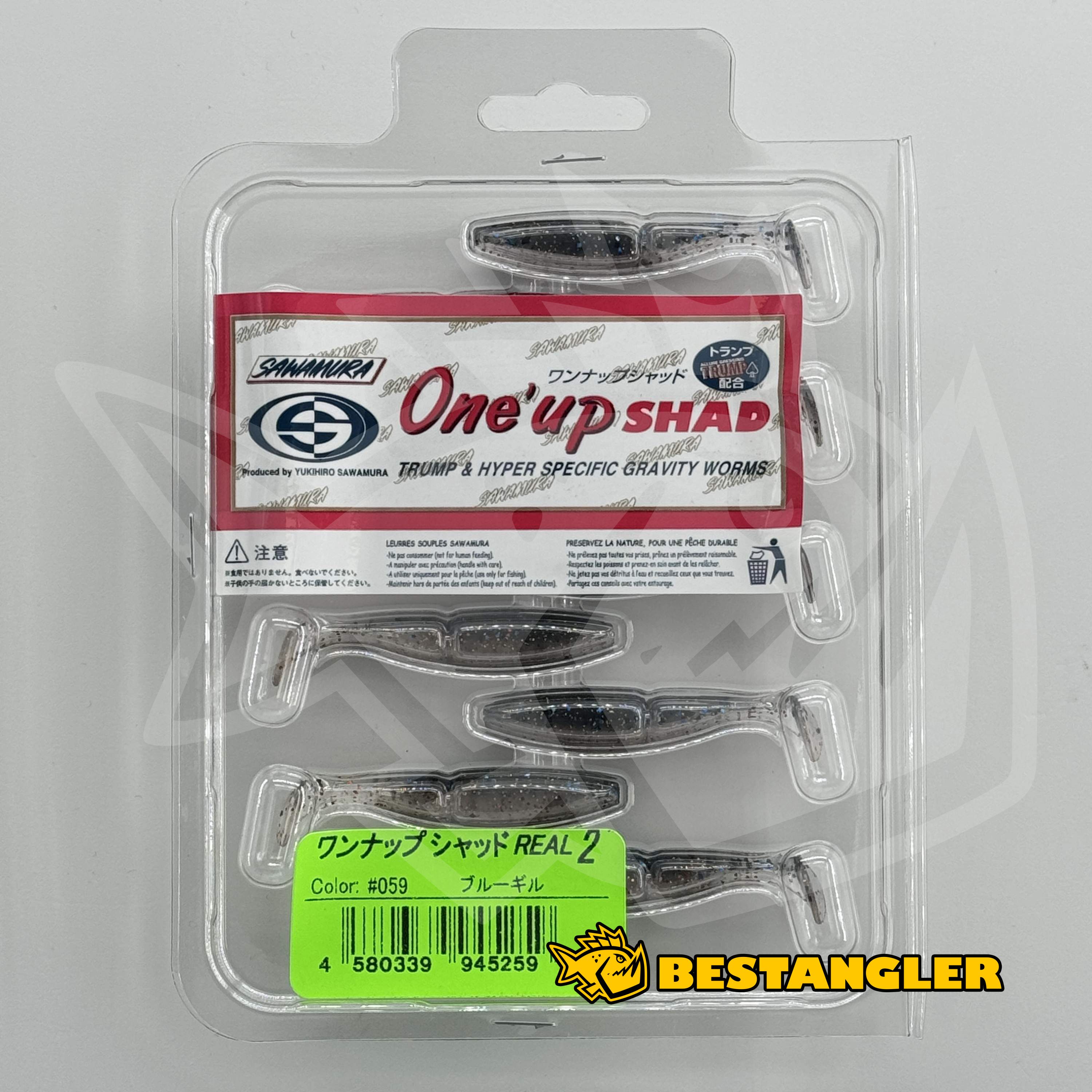Nástraha je napuštěna nasládlým aromatem Sawamura TRUMP, které prodlužuje dobu držení v tlamce a zvyšuje úspěšnost záseku. Typickým znakem jsou také náhodně míchané barevné přechody – v jednom balení často nenajdete ani dvě naprosto stejné nástrahy, každý kus je originál. Díky plnějšímu, širšímu profilu vytváří One Up Shad výrazný tlak na vodu a je ideální pro lov na jigové hlavičce, offsetovém háčku, Texas a Carolina rig nebo i bez zátěže, kdy naplno vynikne jeho charakteristická akce.