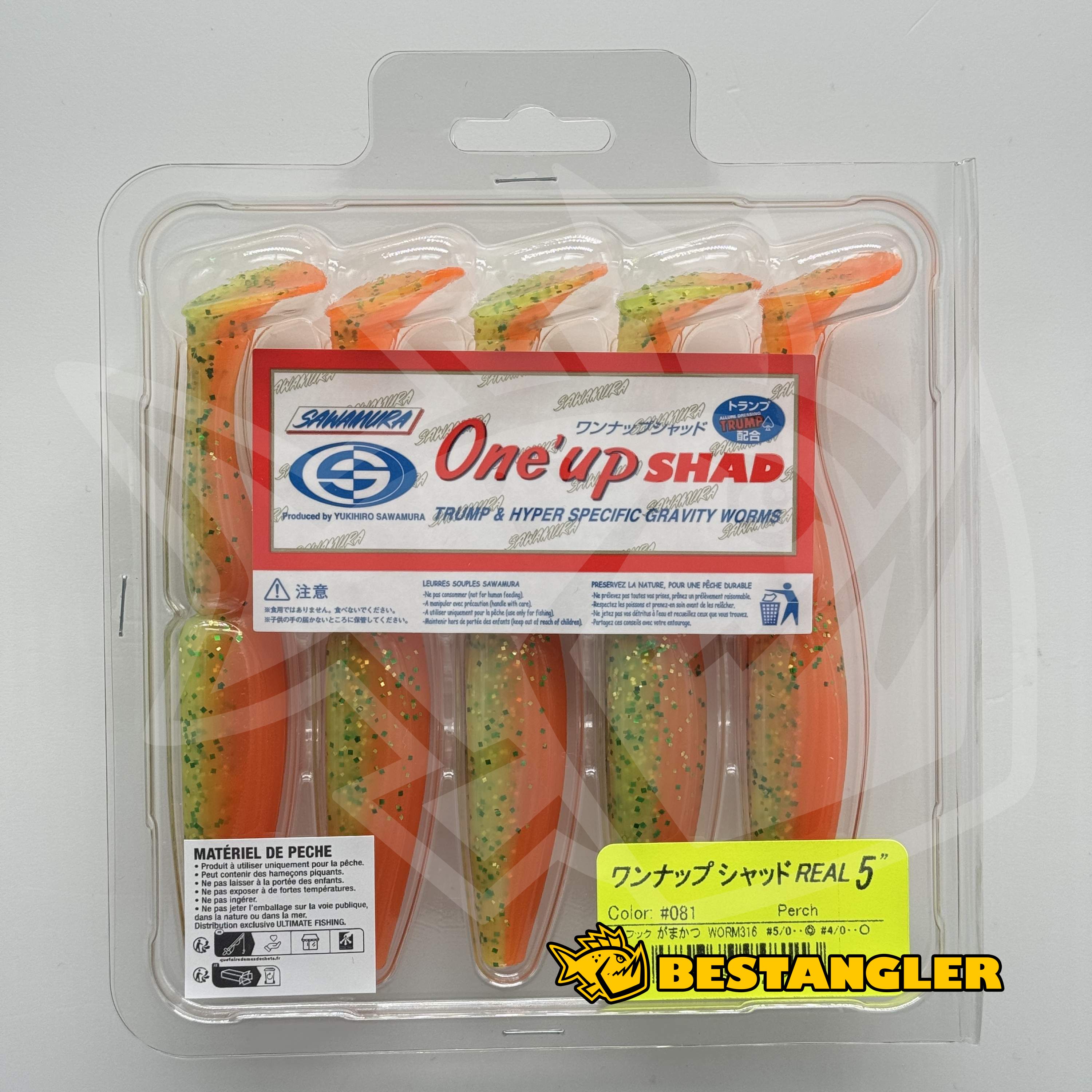 Nástraha je napuštěna nasládlým aromatem Sawamura TRUMP, které prodlužuje dobu držení v tlamce a zvyšuje úspěšnost záseku. Typickým znakem jsou také náhodně míchané barevné přechody – v jednom balení často nenajdete ani dvě naprosto stejné nástrahy, každý kus je originál. Díky plnějšímu, širšímu profilu vytváří One Up Shad výrazný tlak na vodu a je ideální pro lov na jigové hlavičce, offsetovém háčku, Texas a Carolina rig nebo i bez zátěže, kdy naplno vynikne jeho charakteristická akce.
