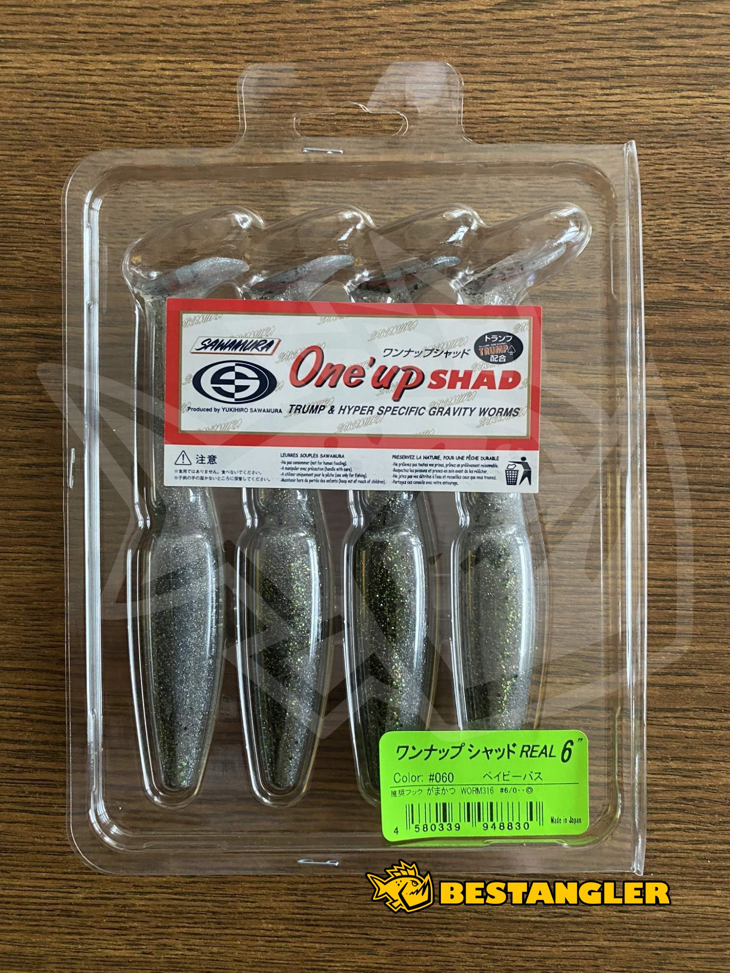 Gumová nástraha Sawamura One Up Shad 6" (124 mm) se drží již několik let na vrcholu žebříčku japonského trhu. Tato nástraha je velice účinná jak při lovu sladkovodních dravců, stejně tak i při chytání na moři. Dravci ji přijímají velmi ochotně díky její „wobb-roll“ akci (kolébání-převalování). Navíc speciální aroma použitých enzymů dokáže ryby dokonale pobláznit. Lze nastražit jak na jigovou hlavičku, tak na offsetový háček, Texas rig, Carolina rig, drop shot rig, jako trailer ke spinnerbaitům, či jen volně bez jakékoliv zátěže. Vyrobeno v Japonsku!