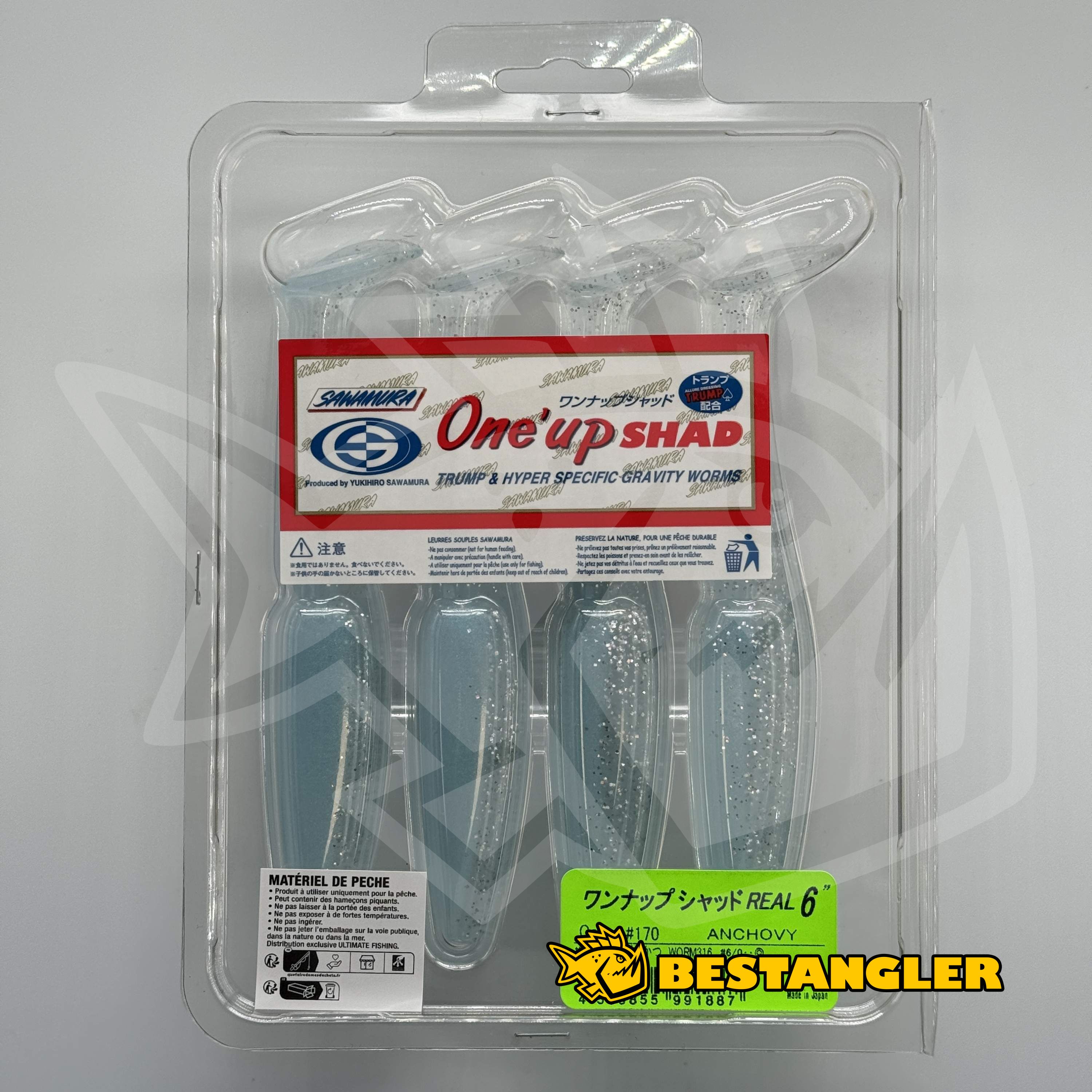 Nástraha je napuštěna nasládlým aromatem Sawamura TRUMP, které prodlužuje dobu držení v tlamce a zvyšuje úspěšnost záseku. Typickým znakem jsou také náhodně míchané barevné přechody – v jednom balení často nenajdete ani dvě naprosto stejné nástrahy, každý kus je originál. Díky plnějšímu, širšímu profilu vytváří One Up Shad výrazný tlak na vodu a je ideální pro lov na jigové hlavičce, offsetovém háčku, Texas a Carolina rig nebo i bez zátěže, kdy naplno vynikne jeho charakteristická akce.