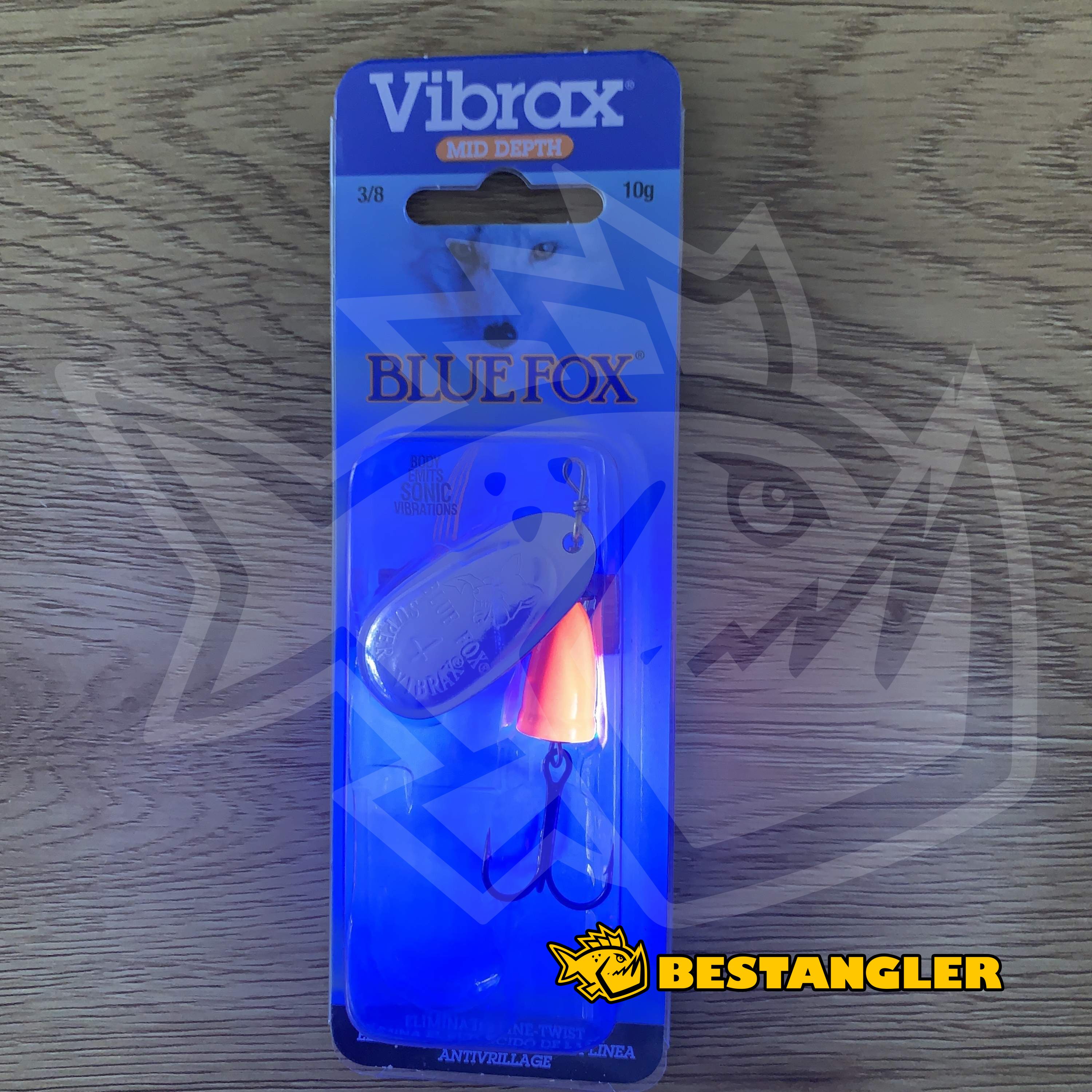 Blue Fox Vibrax Fluorescent je zvuková rotační třpytka s listem ve tvaru oválu. Tvar listu ji předurčuje pro lov pomalejší rychlostí, do hloubky klesne pouze při velmi pomalém vedení.