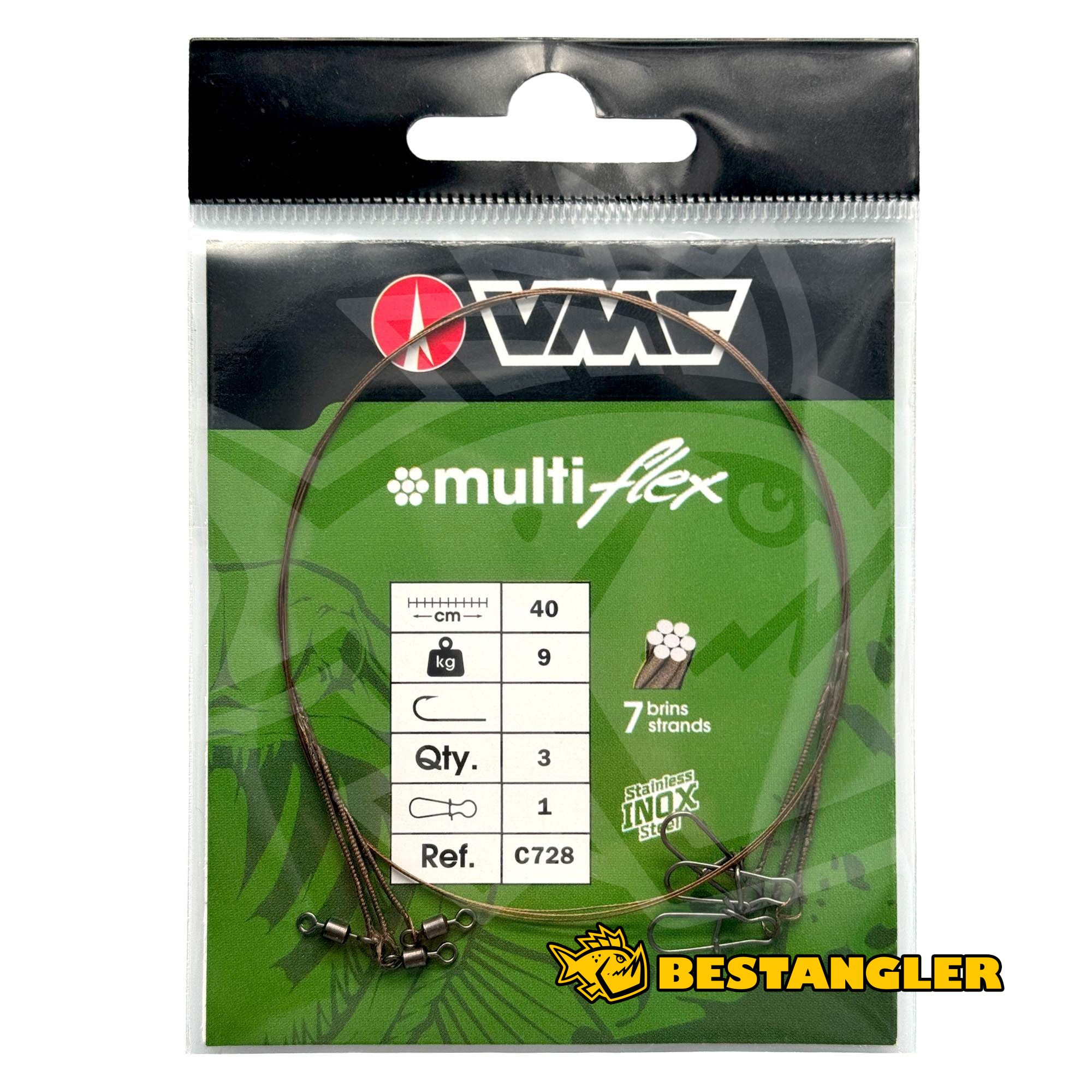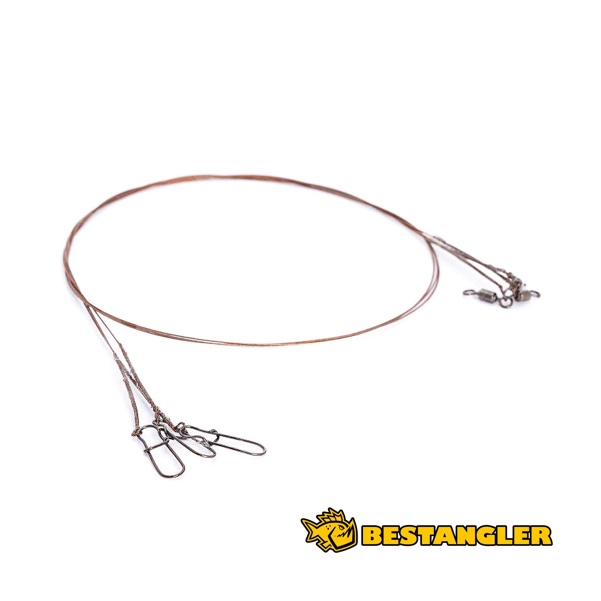 Ocelové lanko VMC MultiFlex Leader (C728) představuje spolehlivý koncový prvek pro lov dravců, který účinně chrání montáž před překousnutím. Je precizně spletené ze sedmi ocelových drátů v konstrukci 1x7, což mu zajišťuje vysokou mechanickou odolnost vůči ostrým zubům. Nenápadná hnědá barva lanka pomáhá lépe splynout s vodním prostředím a zbytečně neupozorňuje opatrné ryby. Při délce 40 cm nabízí dostatečnou bezpečnostní zónu i při útocích větších predátorů. Pro maximální efektivitu je lanko z jedné strany osazeno hladkým obratlíkem, který eliminuje kroucení kmenové šňůry, a z druhé strany spolehlivou karabinkou typu Duolock pro rychlou a bezpečnou výměnu umělé nástrahy. Balení obsahuje 3 kusy tohoto praktického návazce.